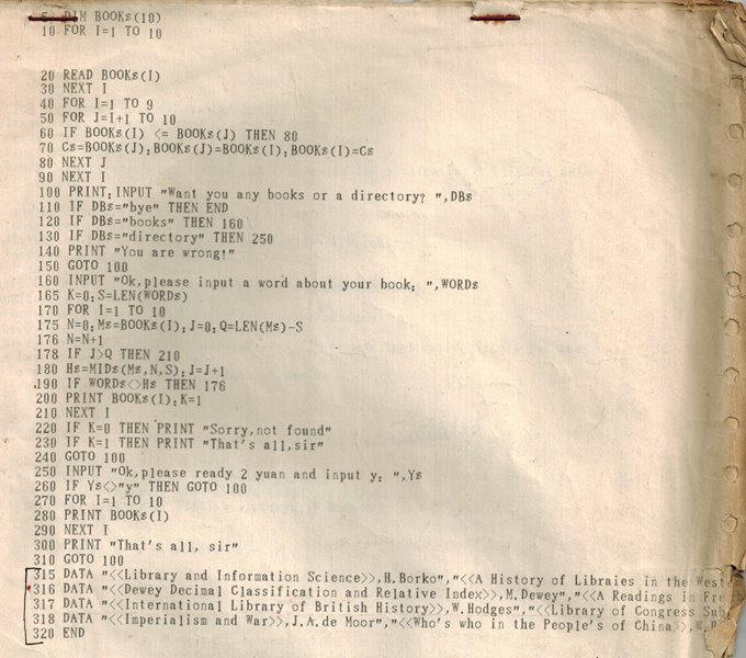 1986年我本科毕业后在高校从事文献检索教学工作,文献检索方式包括手工检索和计算机检索。在进修和教学中打下了一点计算机专业基础,掌握了一点程序、数据库、网络等知识皮毛,最重要的是有了一点计算机特有的思维方式。【参见文末的图A1-图A4】